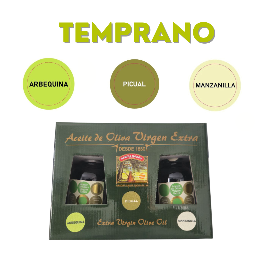 GARCÍA MORÓN EXTRA VIRGIN OLIVE OIL (AOVE) comes from fruits of the PICUAL VARIETY, characterised by its intense golden colour, fruity, aromatic oils, reminiscent of the greenness of the plant they come from.
